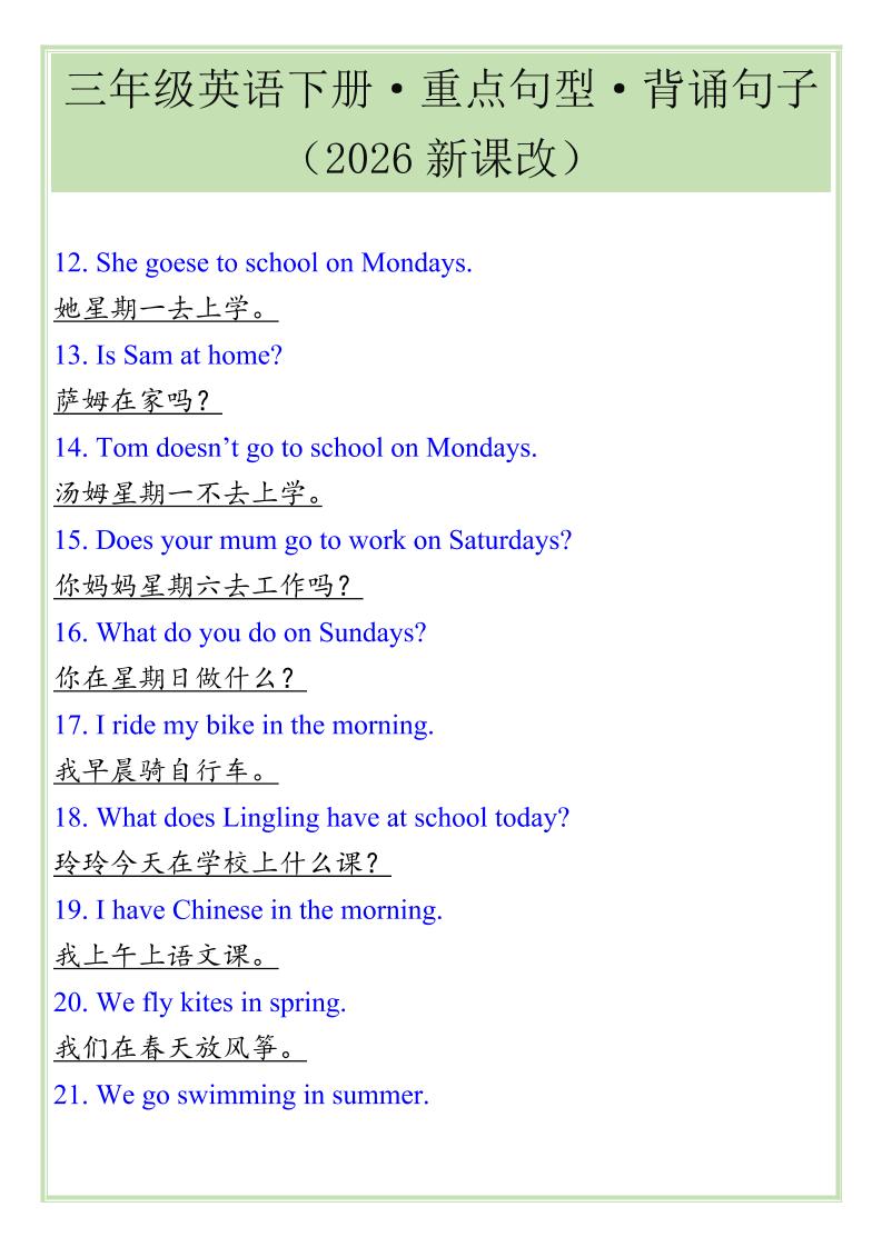三年级下英语重点句型专项《人教版PEP》admin前天更新关注私信011548三年级下英语重点句型专项《人教版PEP》此内容为付费资源,请付费后查看s9.9月度会员免费永久会员免费立即购买您当前未登录!建议登陆后购买,可保存购买订单付费资源已售 63 ——预览已结束,还剩2页未读——您已获得此文档下载权限,请点击底部下载完整文档 © 版权声明文章版权归作者所有,未经允许请勿转载。THE END学科资料 喜欢就支持一下吧点赞48 分享QQ空间微博QQ好友海报分享复制链接收藏